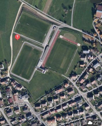Dort bitte parken und dem Feldweg per Rad zum Fußballplatz folgen und auf dem Feldweg bleiben. Am Ende des Fußballplatzes links dem Schotterweg an der Parkbank folgen. Linker Hand ist dann der Pumptrack zu sehen.